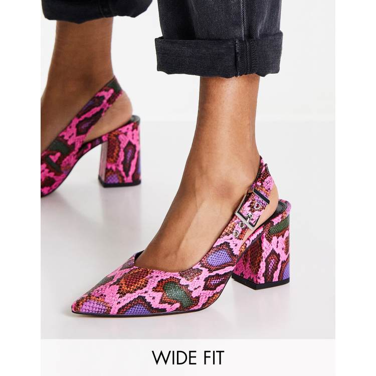 ASOS DESIGN Wide Fit West slingback block heel shoes in pink snake Very well made.