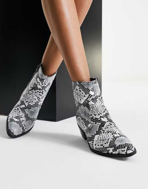 Glamorous mid heel ankle boots in mono snake print ASOS Very well made.