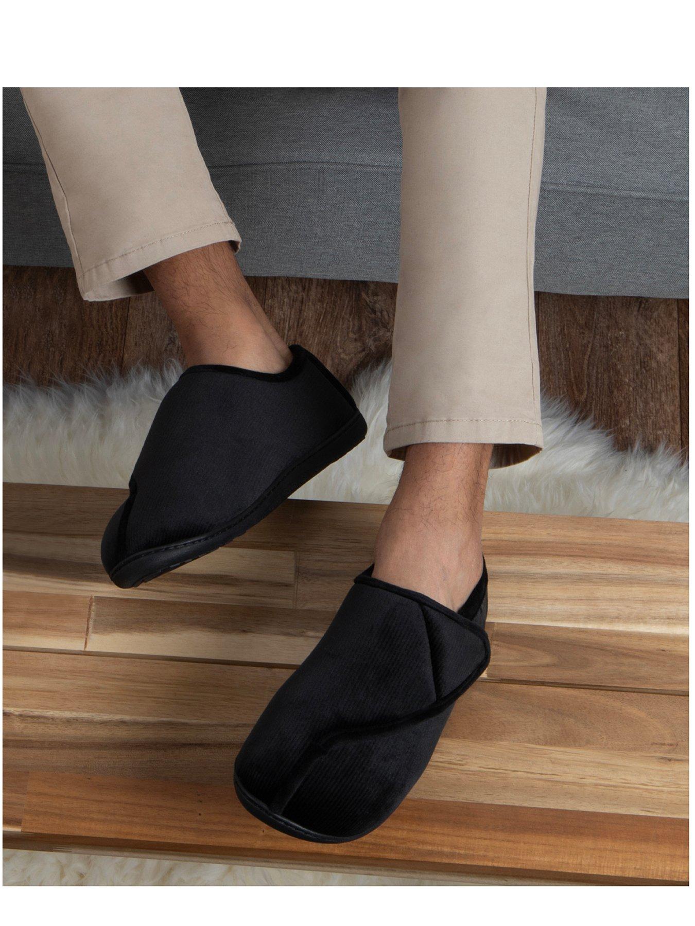 TOTES Isotoner Velour Closed Back W Velcro Opening Slipper Black Very well made.