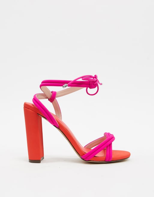 Qupid tie leg heeled sandals in pink and orange Very well made.
