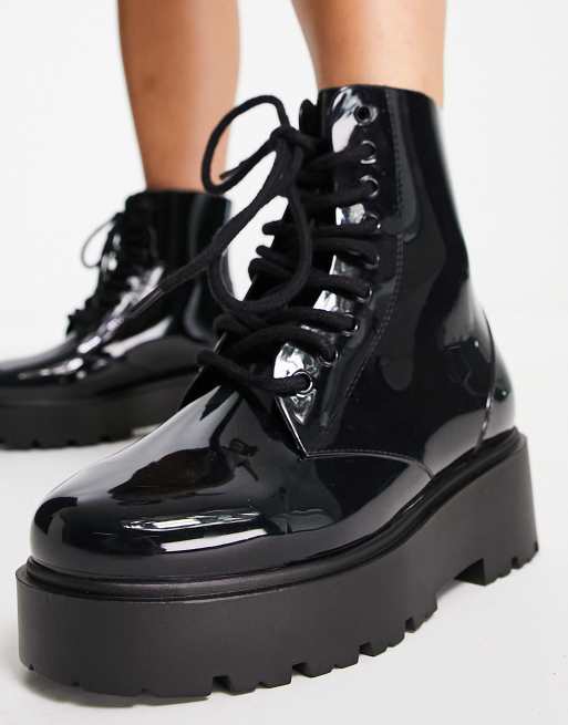 ASOS DESIGN Generate lace up wellie boots in black Very well made.