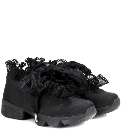 Harriet Chiffon trimmed Satin twill Trainers In Black Very well made.