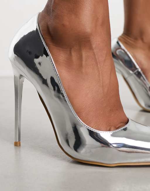 Midnight Silver Mirror Wrap Around Bow Pointed Toe Court Heels Very well made.