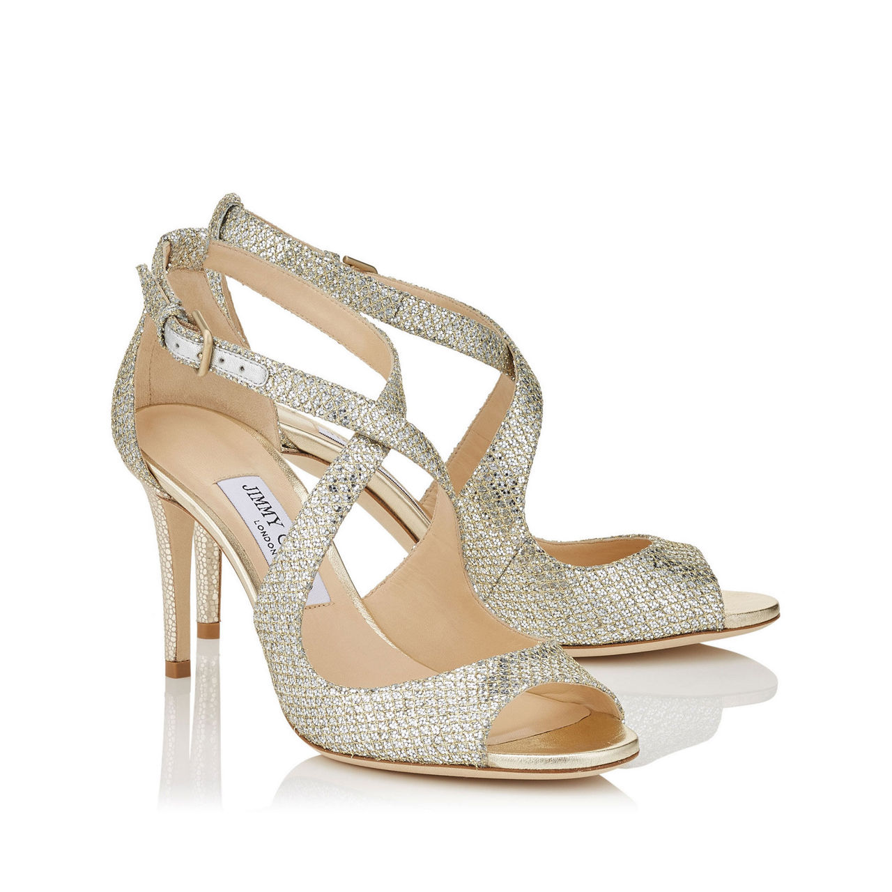 Jimmy Choo Emily 85 Champagne Glitter Heeled Sandals in Metallic Very well made.