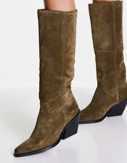 Bronx heeled western pull on knee boots in brown suede Very well made.