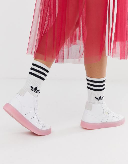 adidas Originals Sleek Mid Top Trainer in White and Pink Very well made.