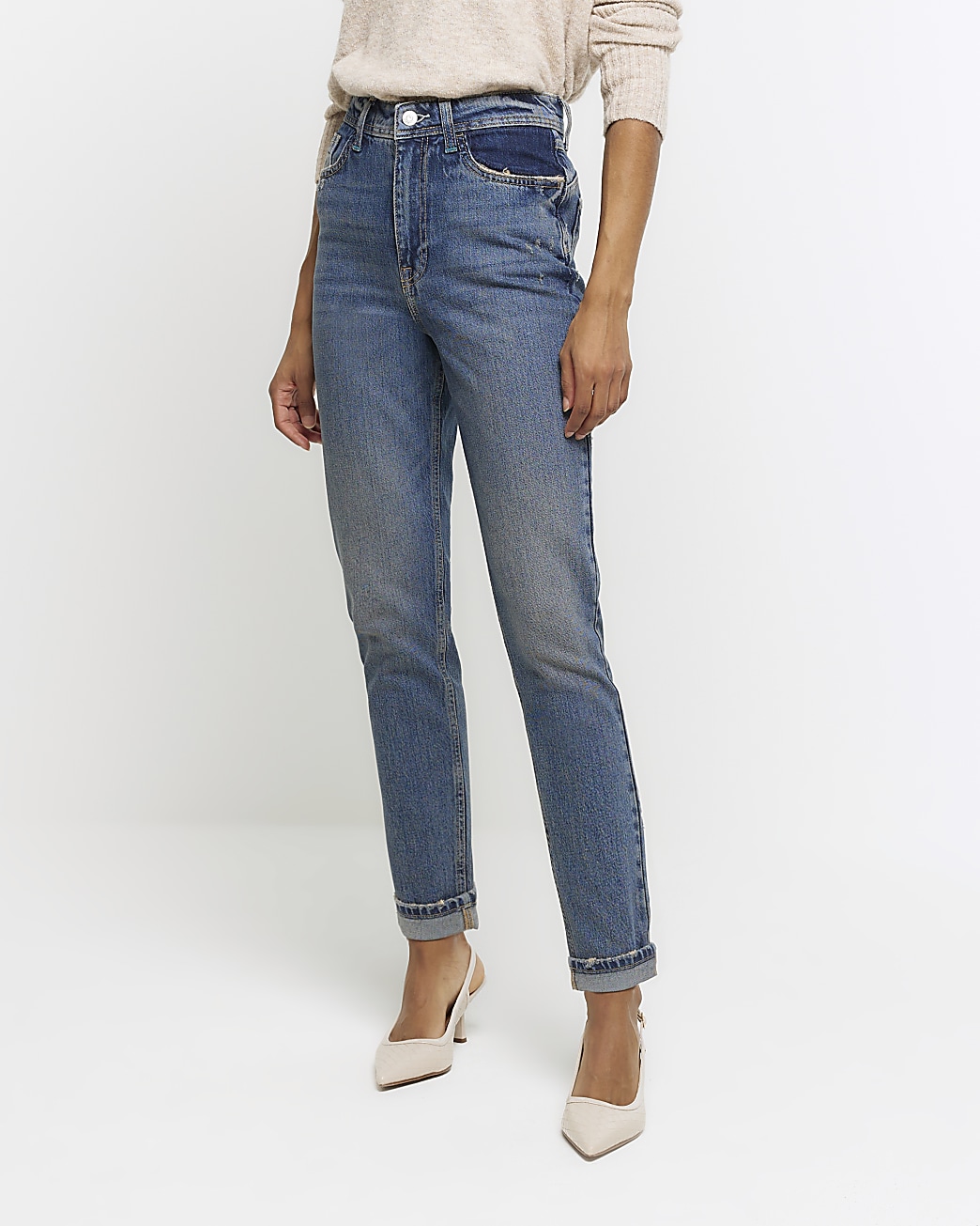 River Island Womens High Waisted Destroyed Ripped Mom Jeans in Mid Blue Very well made.