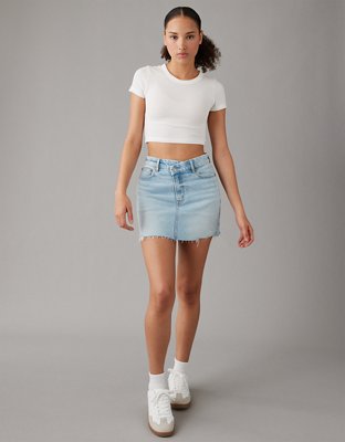 AE Stretch Curvy Crossover Waist High Waisted Perfect Denim Mini Skirt Very well made.
