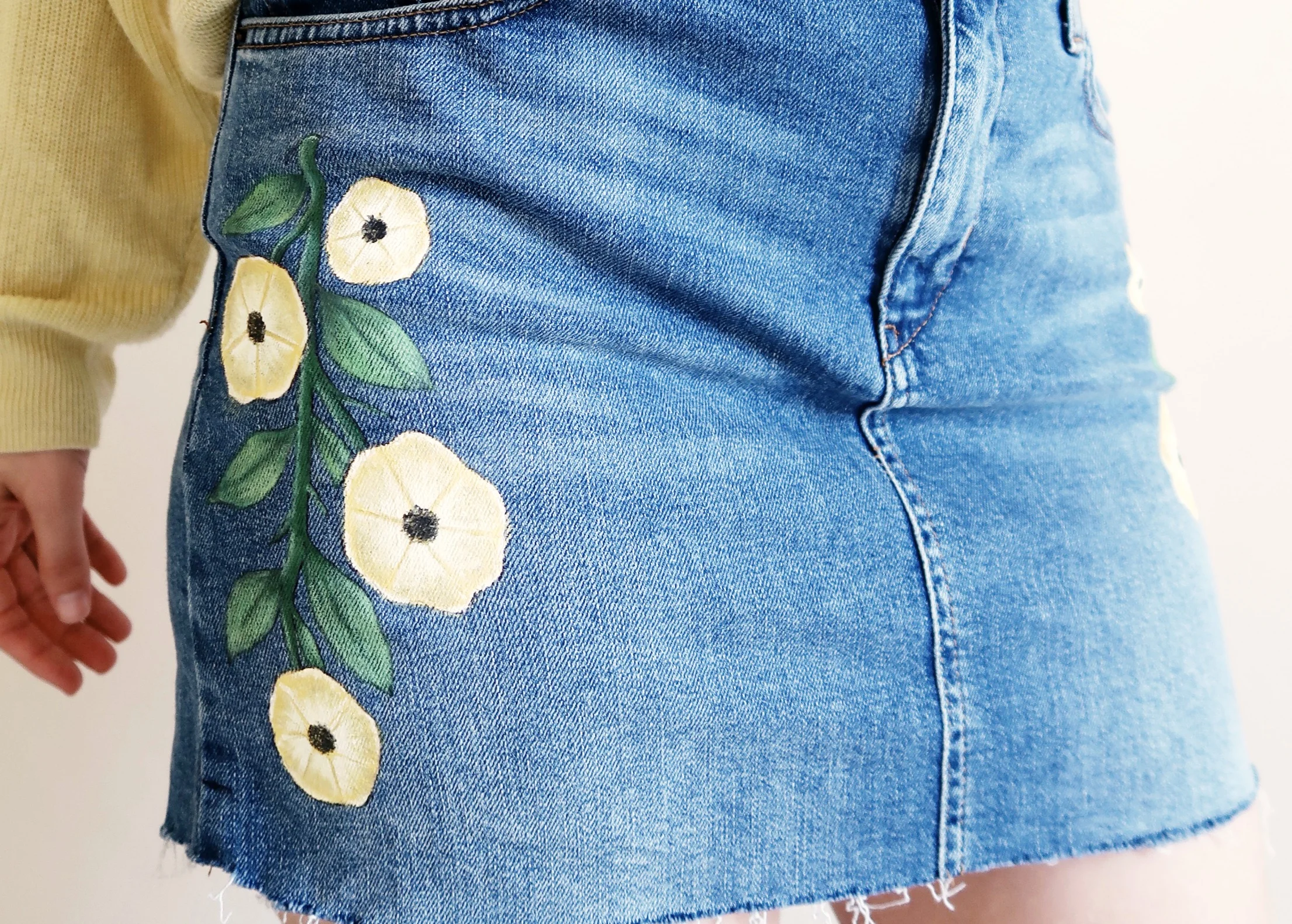 DIY Painting my Denim Jeans Skirt Hacks to Recycle and Reuse clothes Very well made.