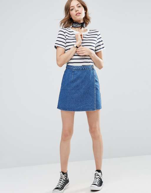 ASOS Denim Wrap Skirt in Mid Wash Blue Very well made.