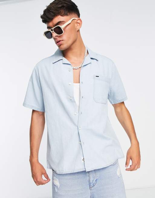 Only Sons denim camp collar shirt in light wash denim Very well made.