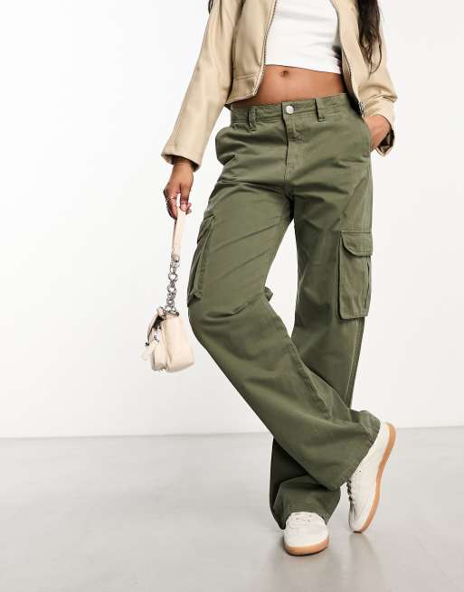 Pull Bear mid rise straight leg cargo pants in khaki Very well made.