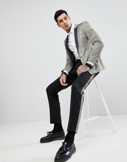 Asos Skinny Suit Pants In Black With Gold Brocade Side Stripe 64 Very well made.