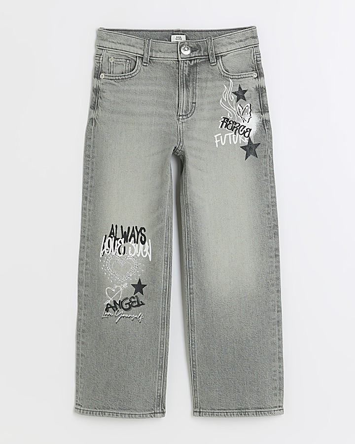 Grey Embellished Mom Jeans 3 16yrs Very well made.