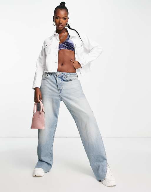 Rebellious Fashion frayed hem cropped denim jacket in white Very well made.
