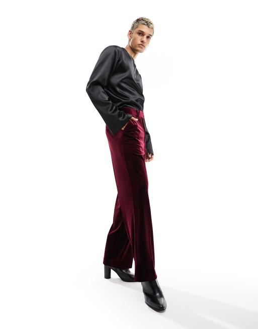 ASOS DESIGN smart wide leg trousers in burgundy velvet Very well made.