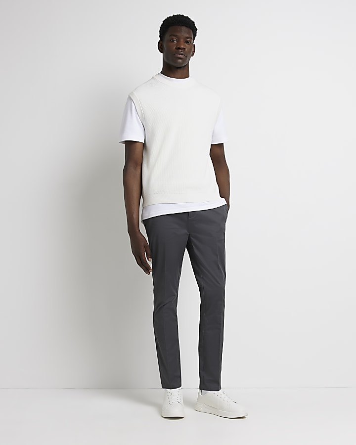Grey skinny fit smart chino trousers Very well made.