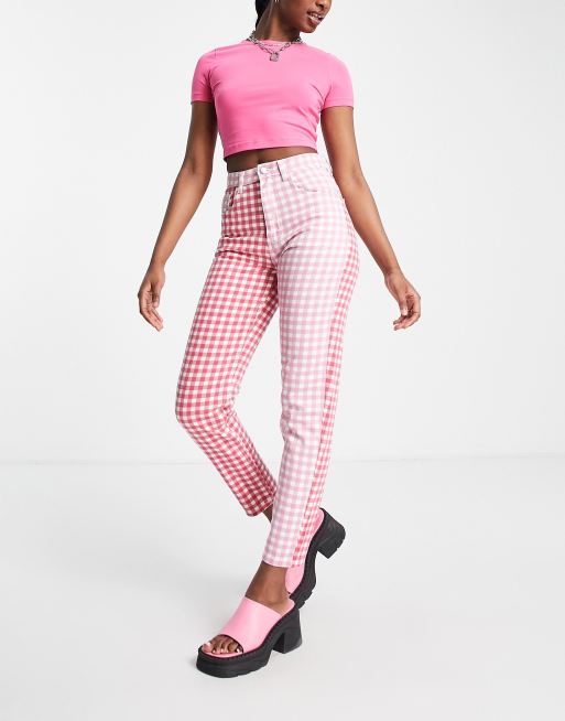 Daisy Street high waisted mom jeans in pink red gingham mix ASOS Very well made.