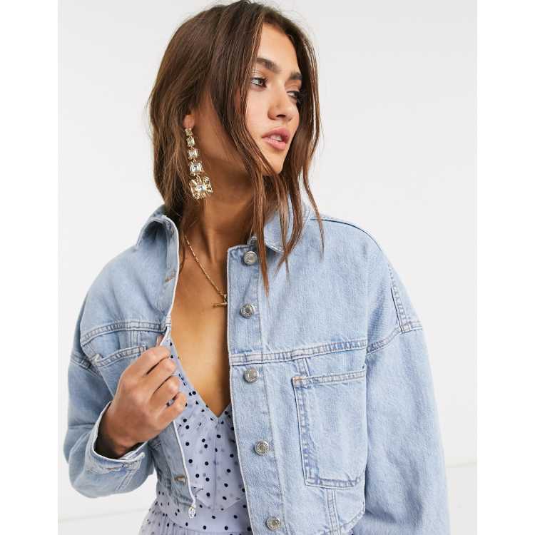 Topshop cropped denim jacket in mid wash blue Very well made.