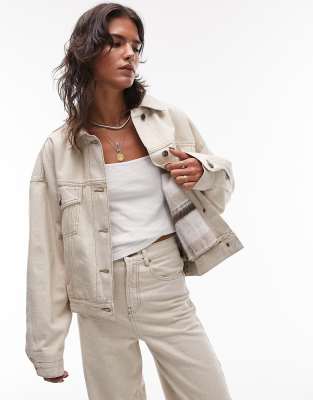 Topshop co ord denim balloon jacket with check lining in ecru White Very well made.