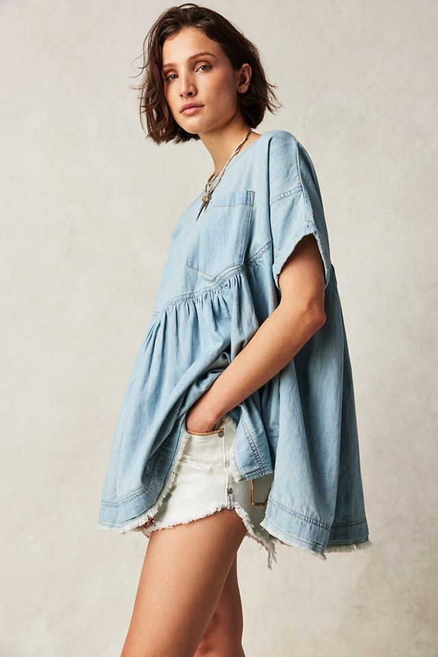 Free People Charlie Denim Top Dress Buttondown Ruffle Trim Swingy Blue XS NWT eBay Very well made.