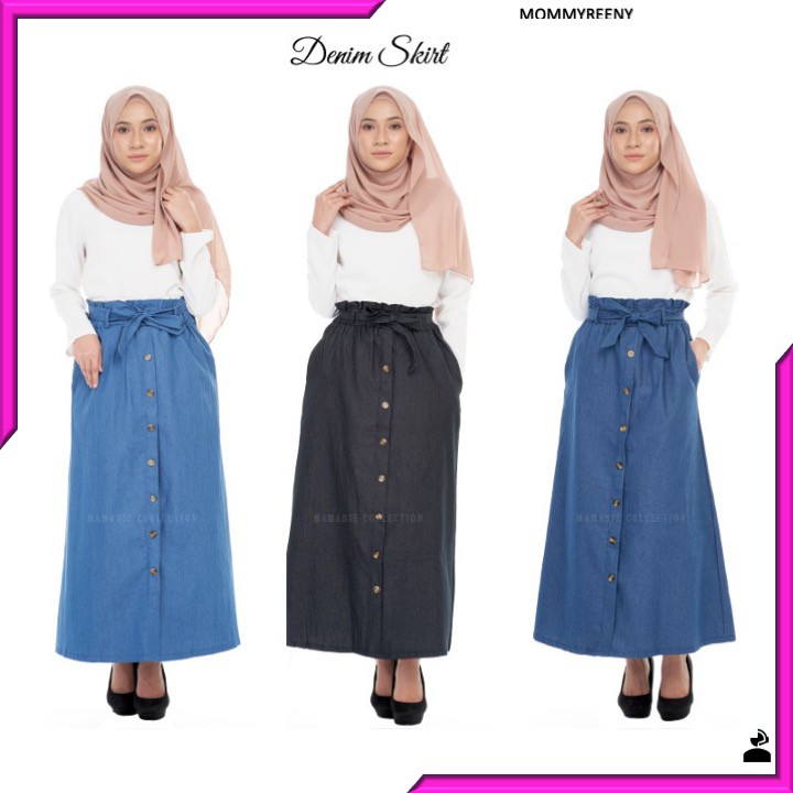 Mamabie Skirt Labuh Muslimah Jeans Denim Long Skirt Button Skirt Very well made.