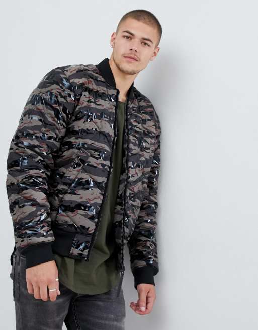 G Star Meefic quilted camo bomber jacket in green Very well made.