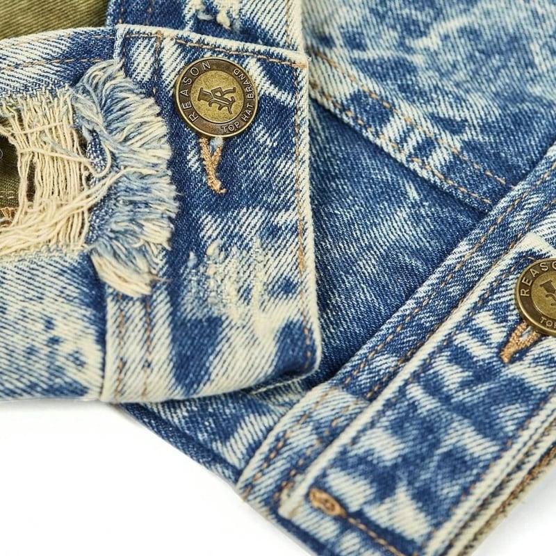 Reason NYC Crazed Patches Fearless Distressed Denim Jacket Size Very well made.