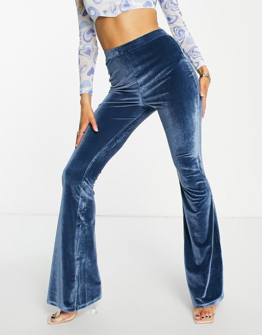 Blue Crushed Velvet Flare Pants Very well made.