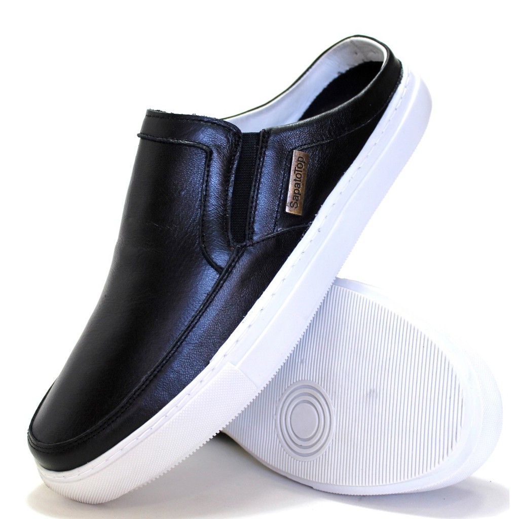 Sapato Mule Babuche Masculino Jeans Cinza Destroye com couro Bordo Very well made.