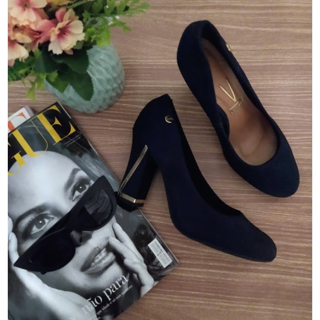 Scarpin Feminino Vizzano Salto Grosso Azul Marinho Camur a Sapato Feminino Very well made.