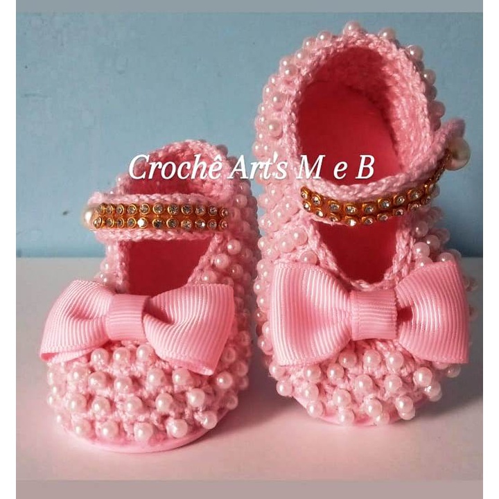 Sapatinho rosa menina perfeito em croch com p rola e la o Very well made.
