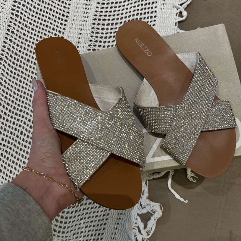 Rasteira Arezzo em X Tiras em Strass Suuuper Brilhosa Rasteira Feminina Arezzo Usado 87199270 enjoei Very well made.