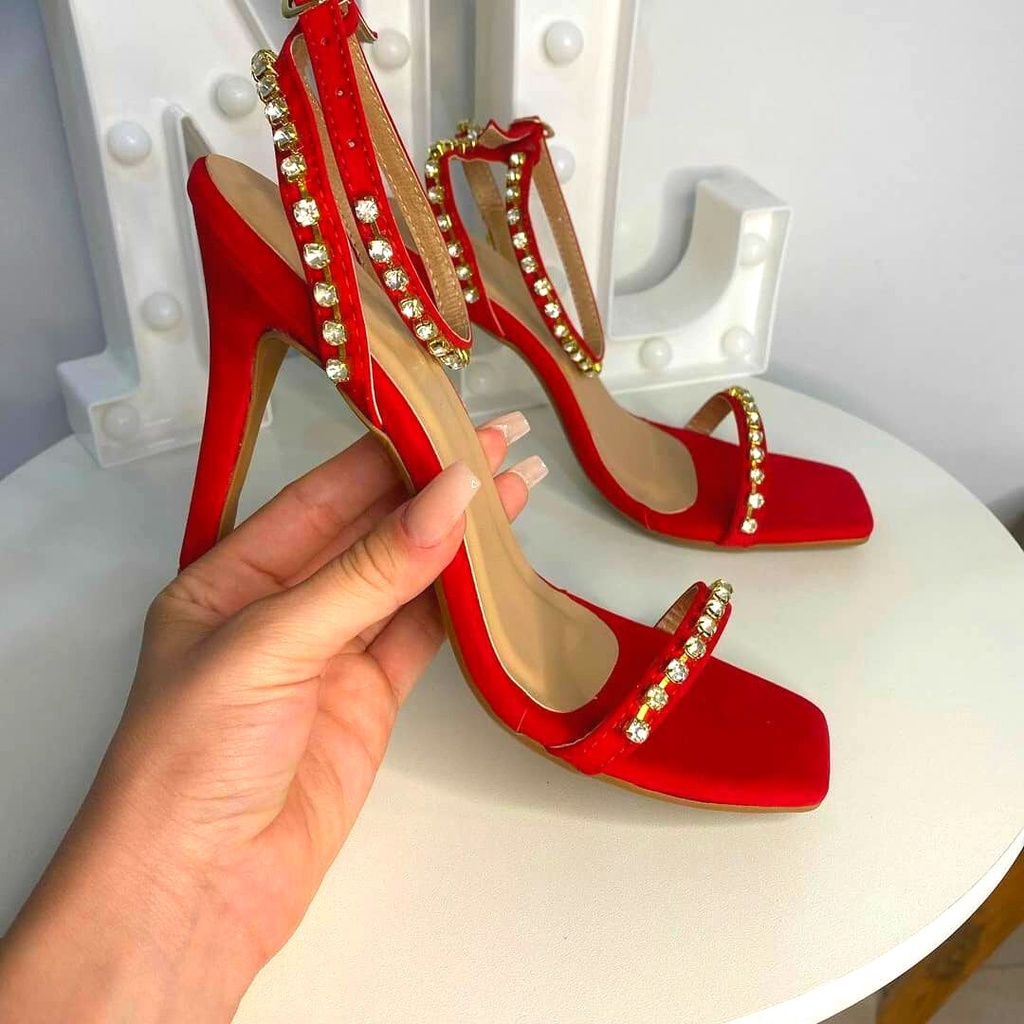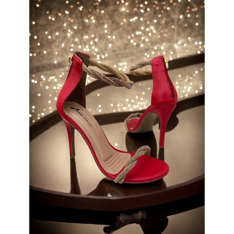 Sandalia feminina salto com brilho strass festa confort vel vermelha Very well made.
