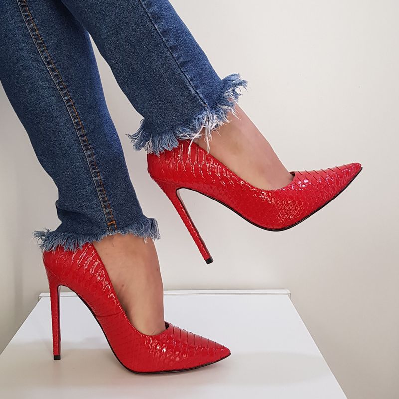 Sapato Sola Vermelha Scarpin Vermelho Escamas Bico Fino Tamanho 32 Very well made.