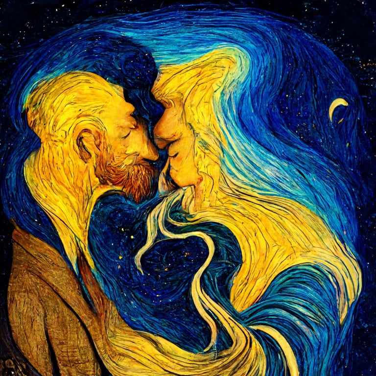Painting of a loving couple in van gogh style on Craiyon Very well made.