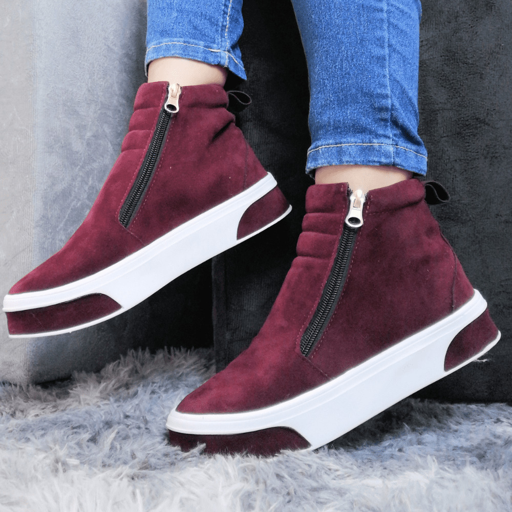 T nis Feminino De Cano Alto Plano Bota Redonda De Cano Curto De Cor S lida Sapatos Confort veis de Camur a Very well made.
