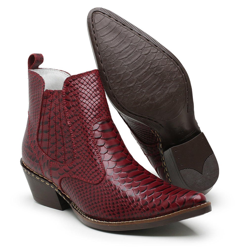 Bota Feminina Bico Fino Cano Curto Couro Salto 6 CM Cobra Vermelho Very well made.