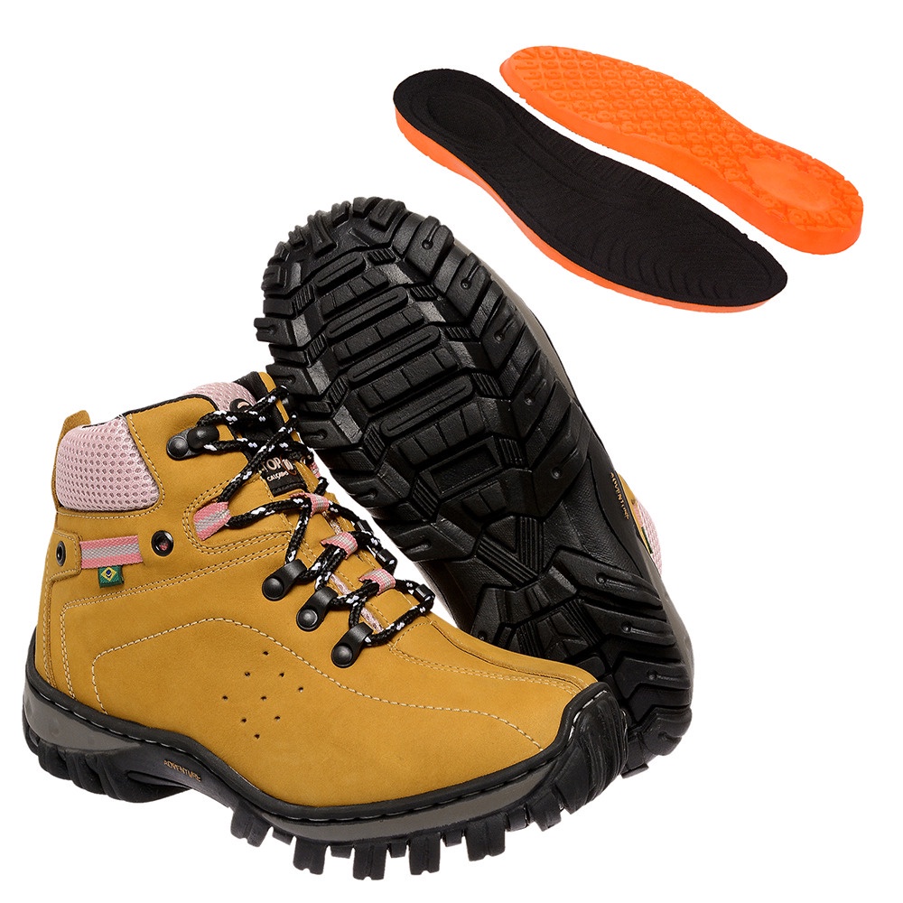 Bota Coturno Feminino Adventure Amarelo Rosa em Couro e Solado Very well made.