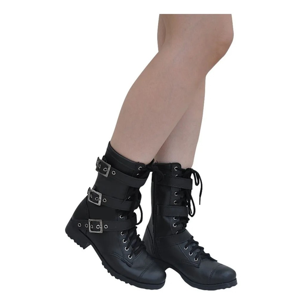Bota Feminina Coturno Punk Rock Estilo Militar 3 Fivelas Cano Very well made.