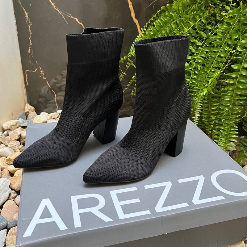 Bota Meia Arezzo Salto Grosso Knit Inverno 2023 Estilosa Esgotada Very well made.