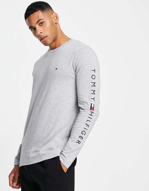 Tommy Hilfiger arm logo cotton long sleeve top in grey marl Very well made.