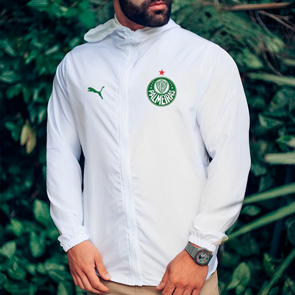 Jaqueta Corta Vento Palmeiras Camuflada Verde Branco Mania Very well made.