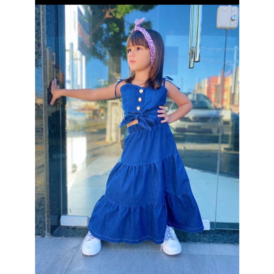Conjunto Infantil Cropeet Bloguerinha Saia Longa Jeans Tecido God Very well made.