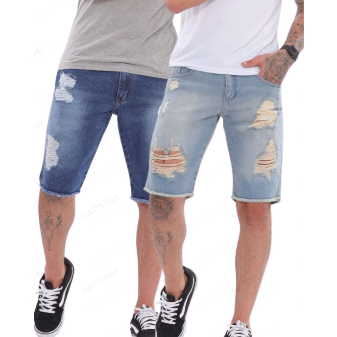 Bermuda Jeans Masculina Destroyed Lavada sem Lycra com Kit Ref 11 Very well made.