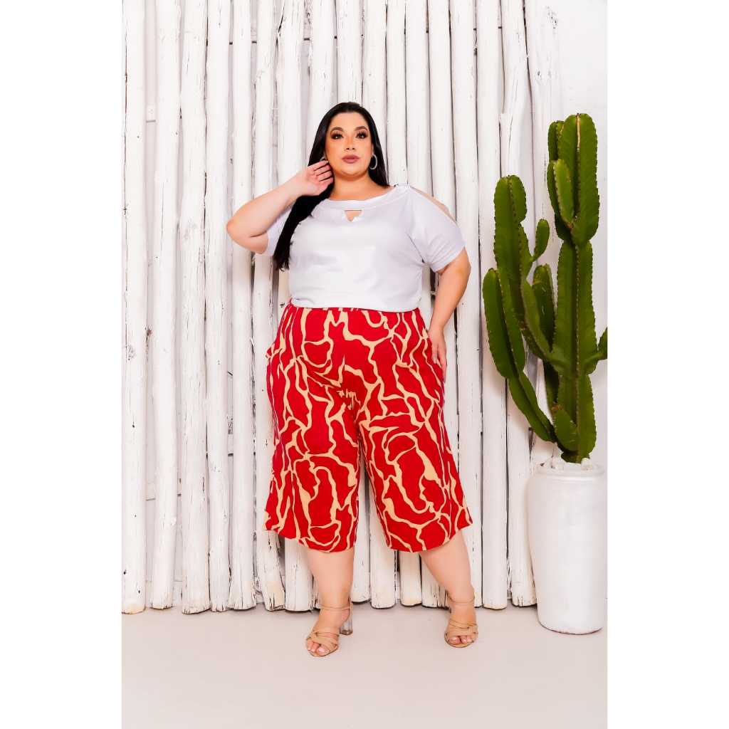 Conjunto Plus Size Pantacourt e Cropped Em Viscose Estampado Very well made.