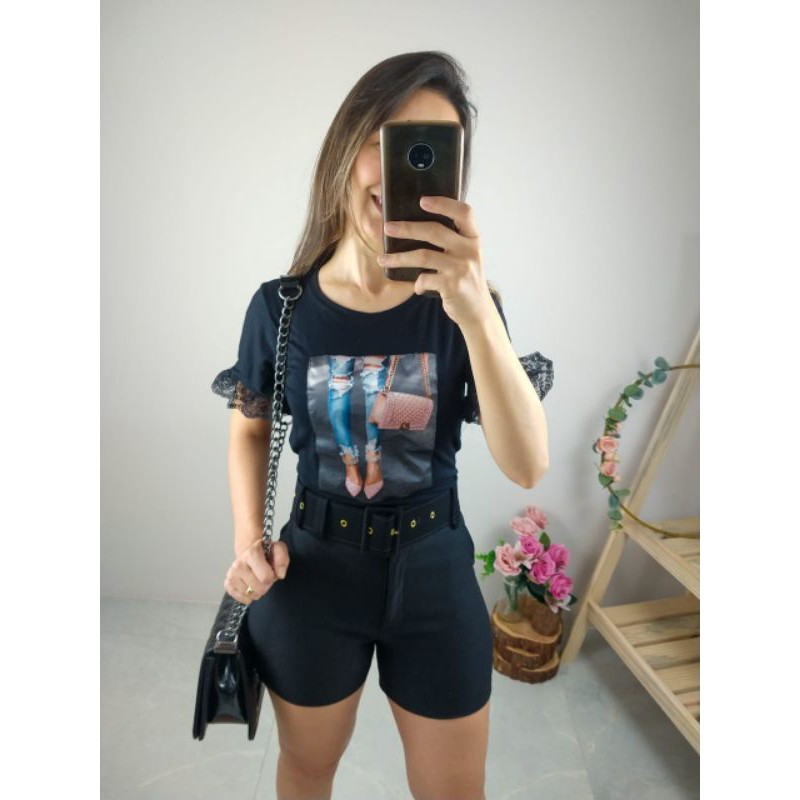 Short Cintura alta em bengaline preto com cinto de brinde Very well made.