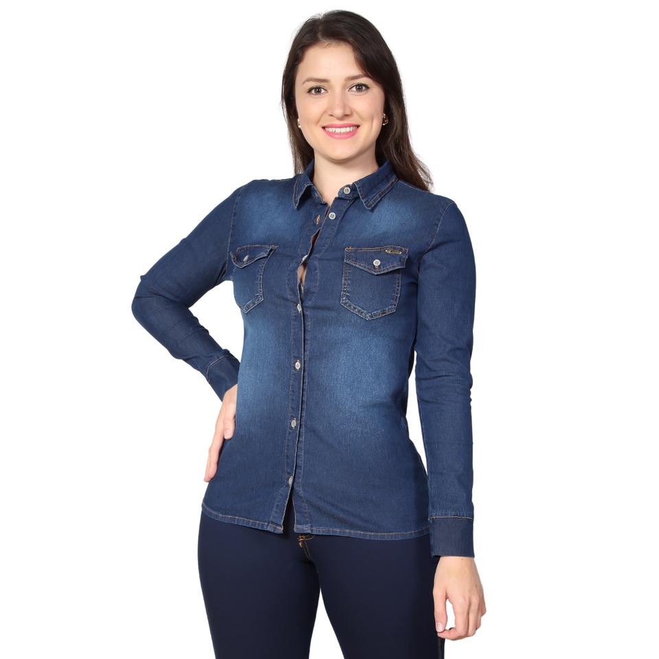Camisa Jeans Feminina Social Lycra Blusa Jacquard Premium Shopee Very well made.