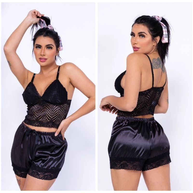 Baby doll cetim feminino renda diversas cores roupa de dormir sensual pijama conjunto short doll sem bojo adulto top e short Very well made.