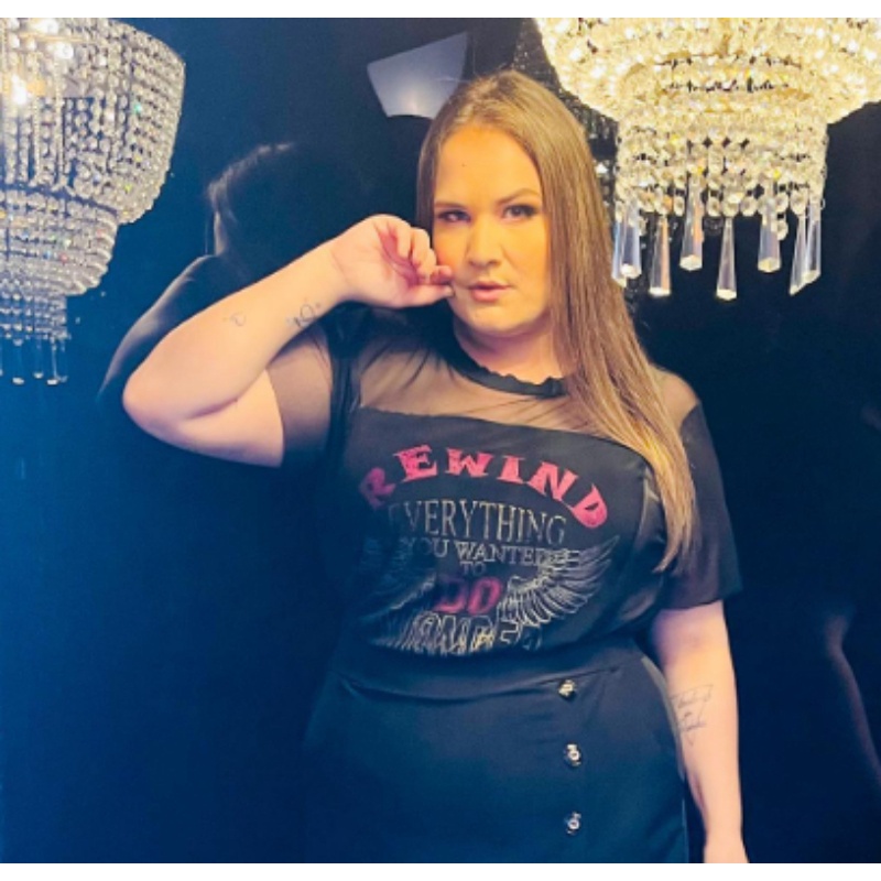 Blusa camiseta feminina de tule estilo rock PLUS SIZE Tamanho 48 Very well made.